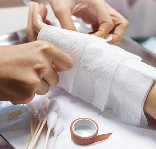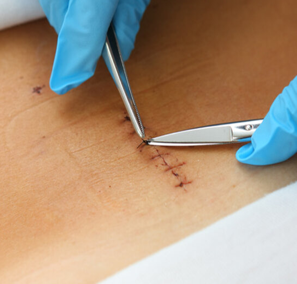 العناية بالمرضى بعد العمليات ومعاينة التئام الجروح.