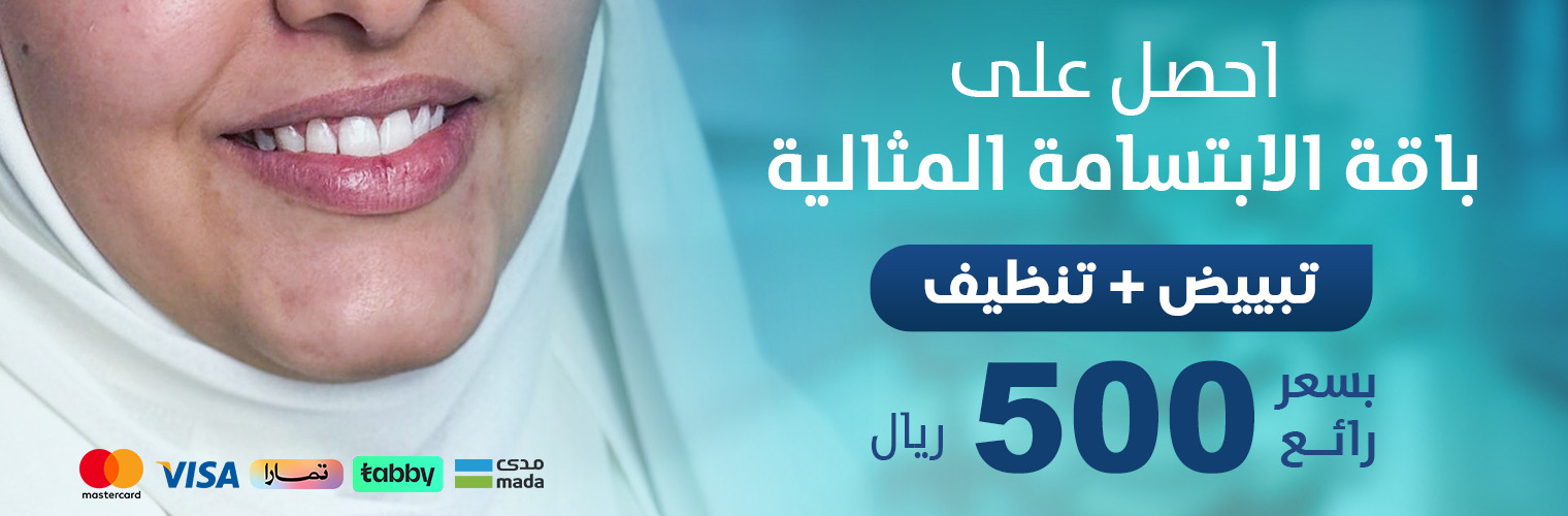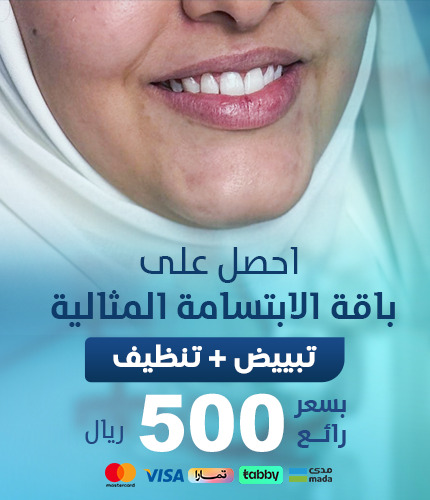 باقة الابتسامة المثالية: تبييض + تنظيف بـ500 ريال. فقط